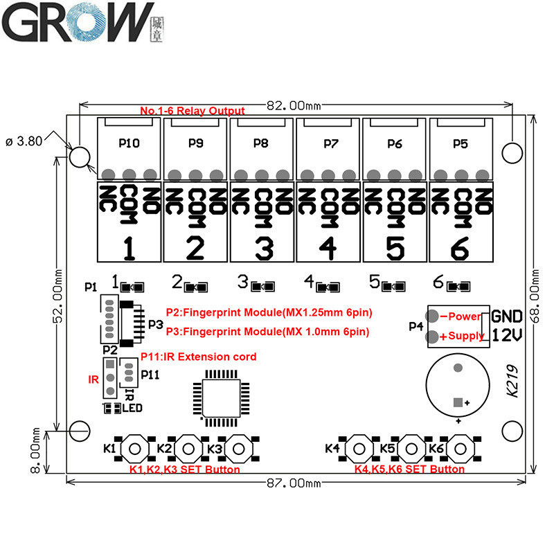 Capacidad de huellas dactilares: 120 piezas (20 huellas dactilares por posición de relé)